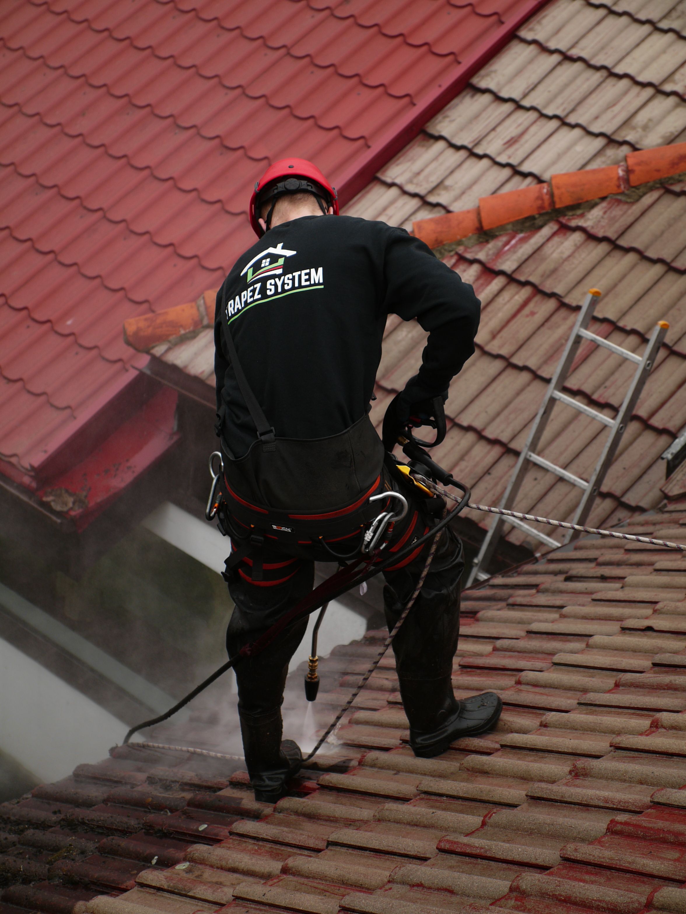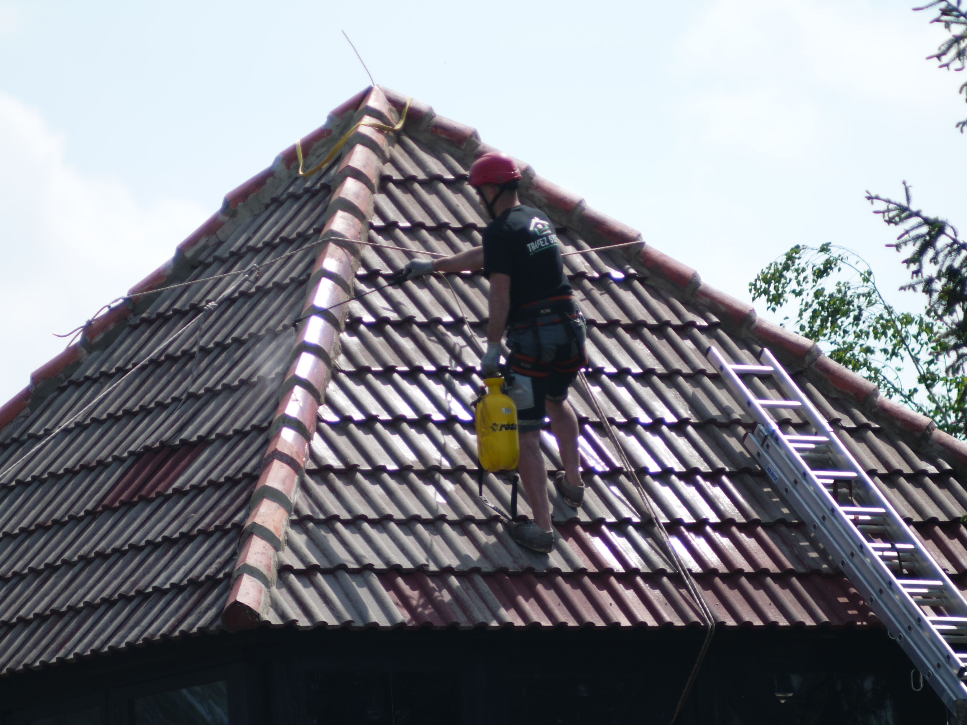 Podstawową formą czyszczenia dachu jest mycie za pomocą myjki wysokociśnieniowej co skutecznie pozwala na usunięcie nieczystości z dachu. Prace wykonujemy przy pomocy technik alpinistycznych oraz drabin.